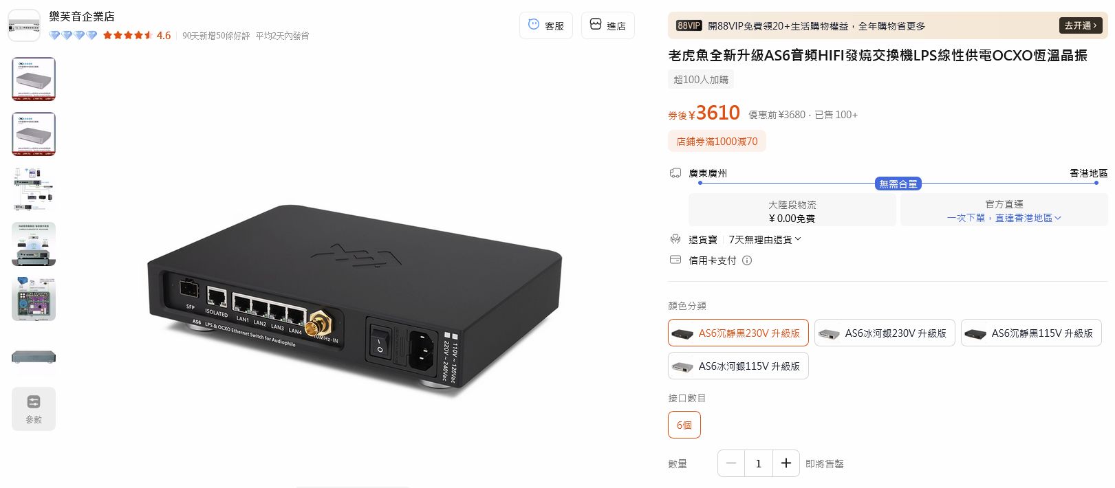 雖然我之前唔係好信 switch 會對音質有好大分別,但之前嘅經驗令我發現喺網絡器材中使用優質電源供應對音質仍然會有正面改善,所以基本要求係要隻 switch 內置靚火牛或者可以外接靚火牛。作為精打細算玩家,我只會考慮買二手,最初有考慮過中國廠「老虎魚」(LHY Audio)嘅產品,佢哋嘅 SW-8 同 SW-6 switch 外型造工精美、內置 LPS、有 TCXO、SW-6 更內置 SFP 接口,可以配合 Lumin P1 嘅 SFP 輸入使用。依兩部嘅二手價都係一千中到兩千蚊左右,而 SW-6 全新價大概三千六蚊,二手可以話係相當抵玩,但佢哋嘅二手都相當搶手,所以有緣無份。